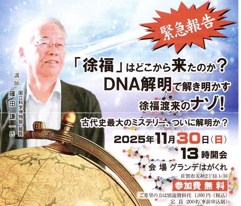 【佐賀市徐福長寿館 開館30周年記念講演会】予告