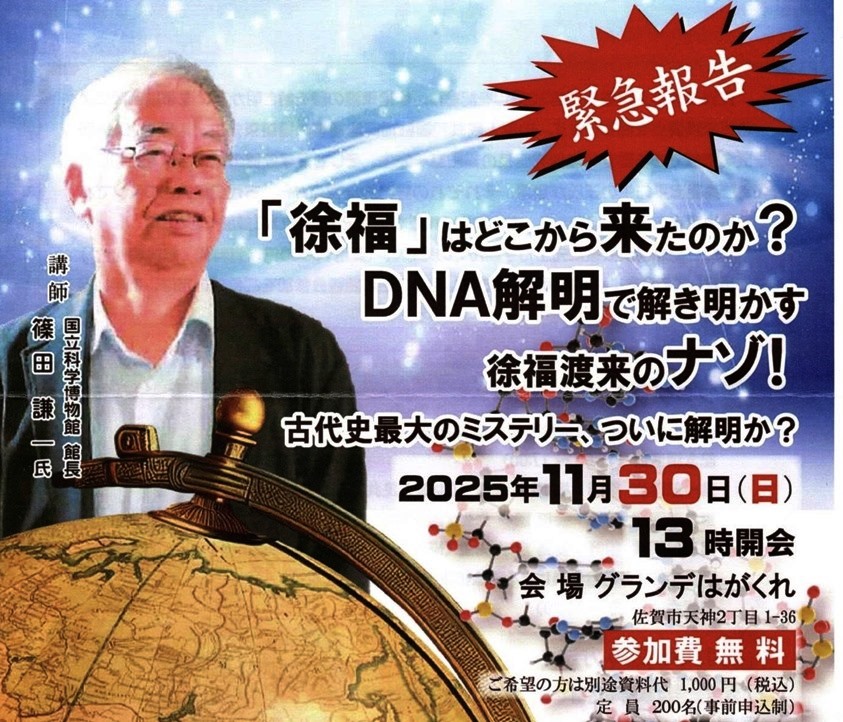 【佐賀市徐福長寿館 開館30周年記念講演会】予告